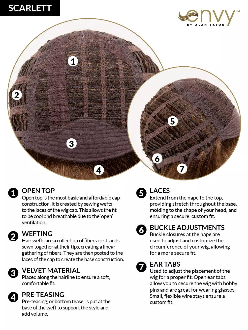 Sleek, smooth, and undeniably modern, SCARLETT delivers a fresh twist on the classic bob. Straight, choppy layers and razored ends create a bold, contemporary look, while the lightweight Open Top construction ensures lasting comfort and confidence. Also available in Petite sizes.
